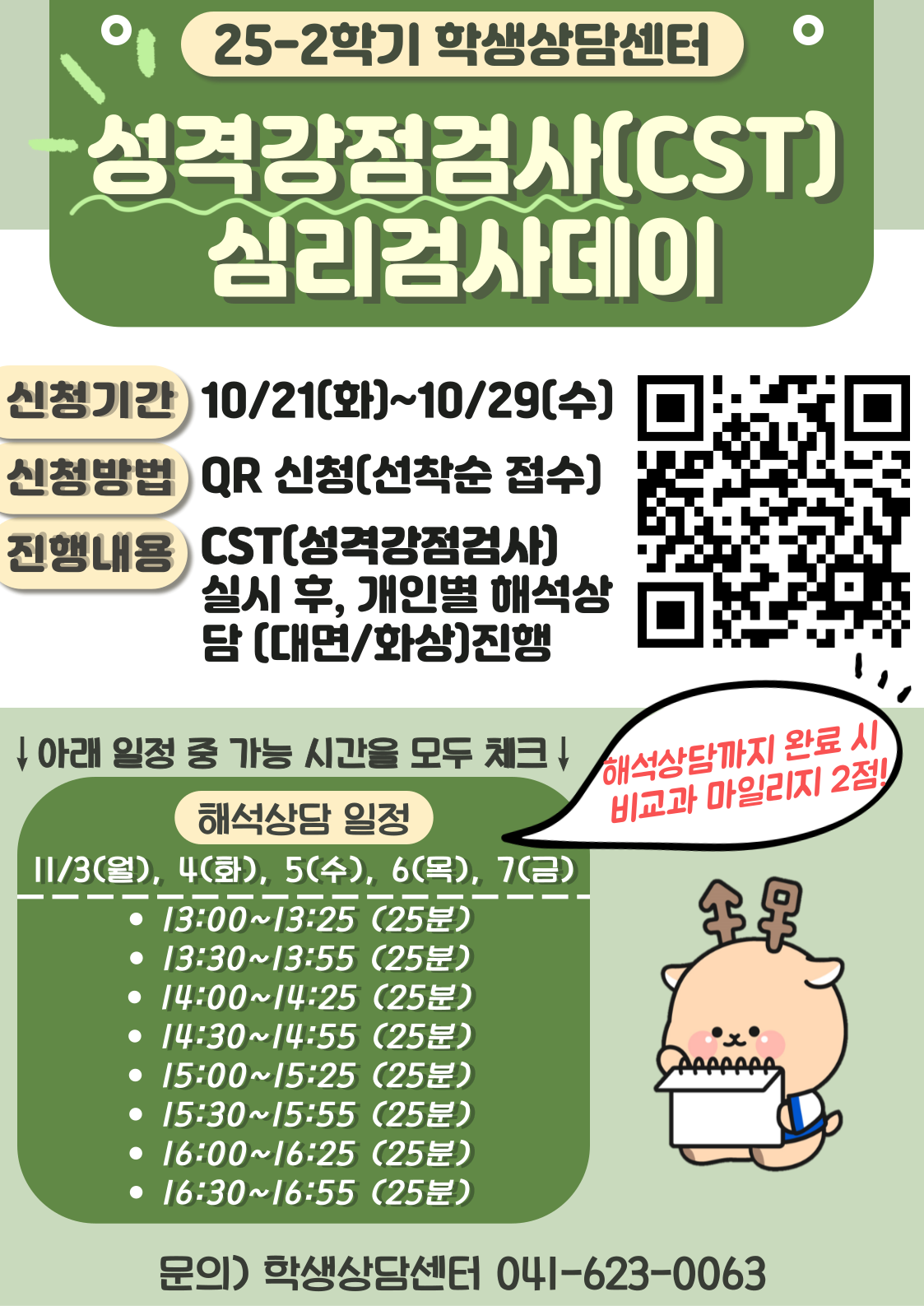 [학생상담센터] 25-2 <성격강점검사> 심리검사데이 신청 안내