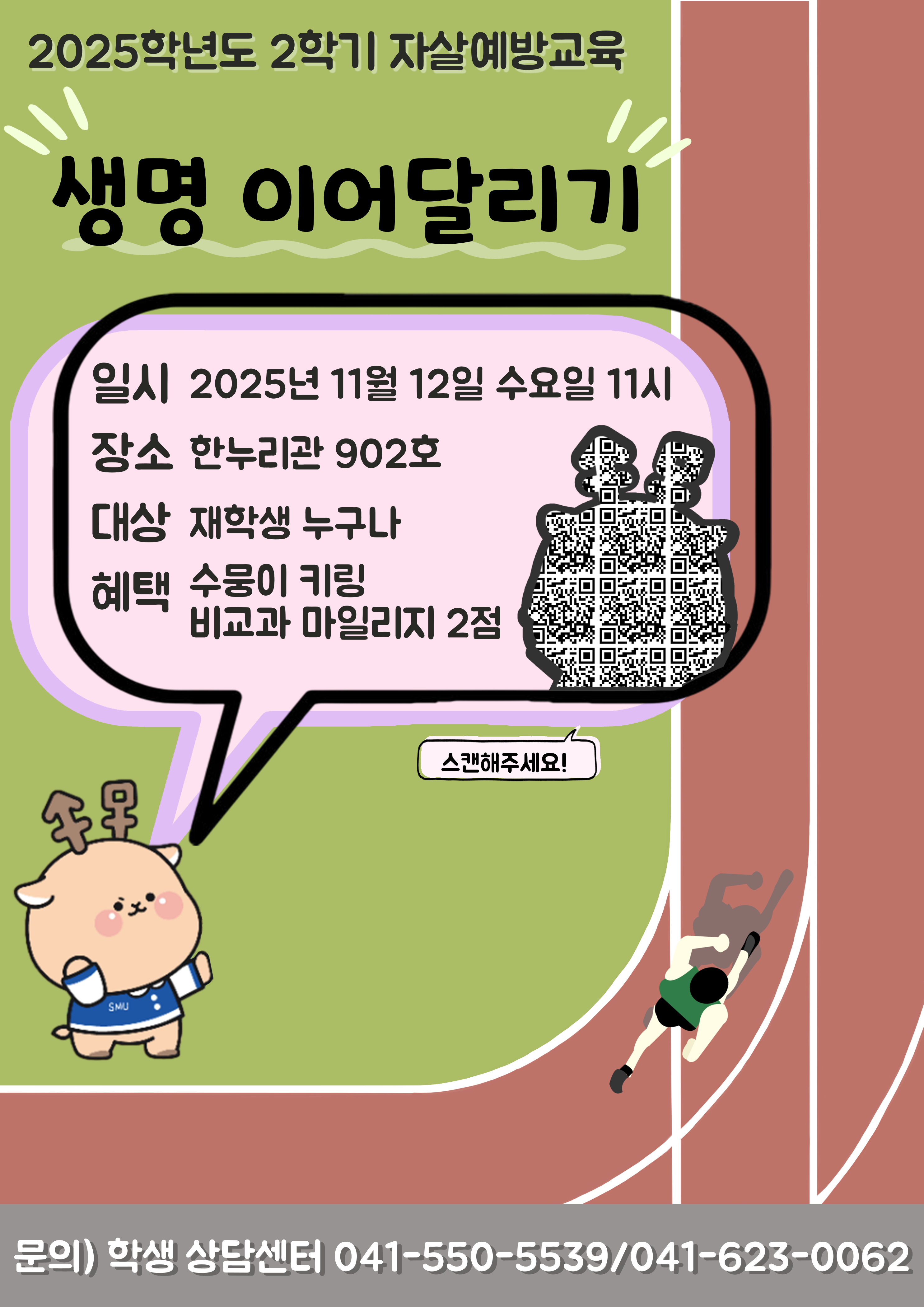 학생상담센터에서는 2025학년도 2학기 자살 예방 교육을 진행합니다.
